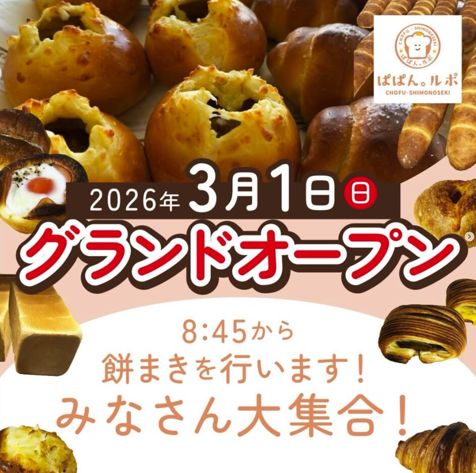 2026年3月1日グランドオープン⟡.* こだわりの焼きたてパンをご用意します🍞 ︎︎ 〖開店〗7:30~18:00 〖定休日〗月曜日 〖支払い方法〗現金、PayPay
